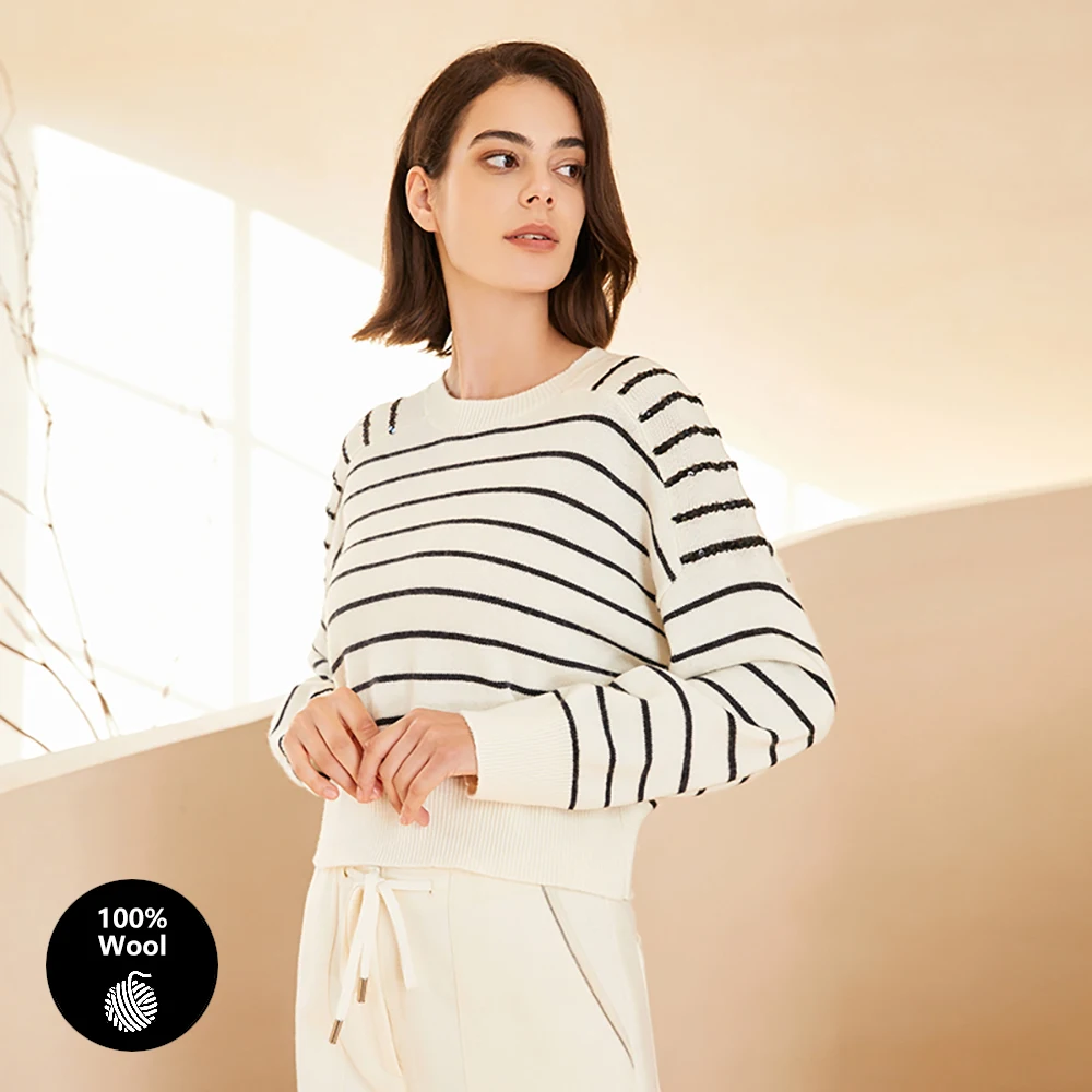 BC-200 Striped Sequined Batwing Sleeved Loose 2/26NM 7GG 100% Merino Wool Clothes Knit woolen Tops For Women’s Sweaters