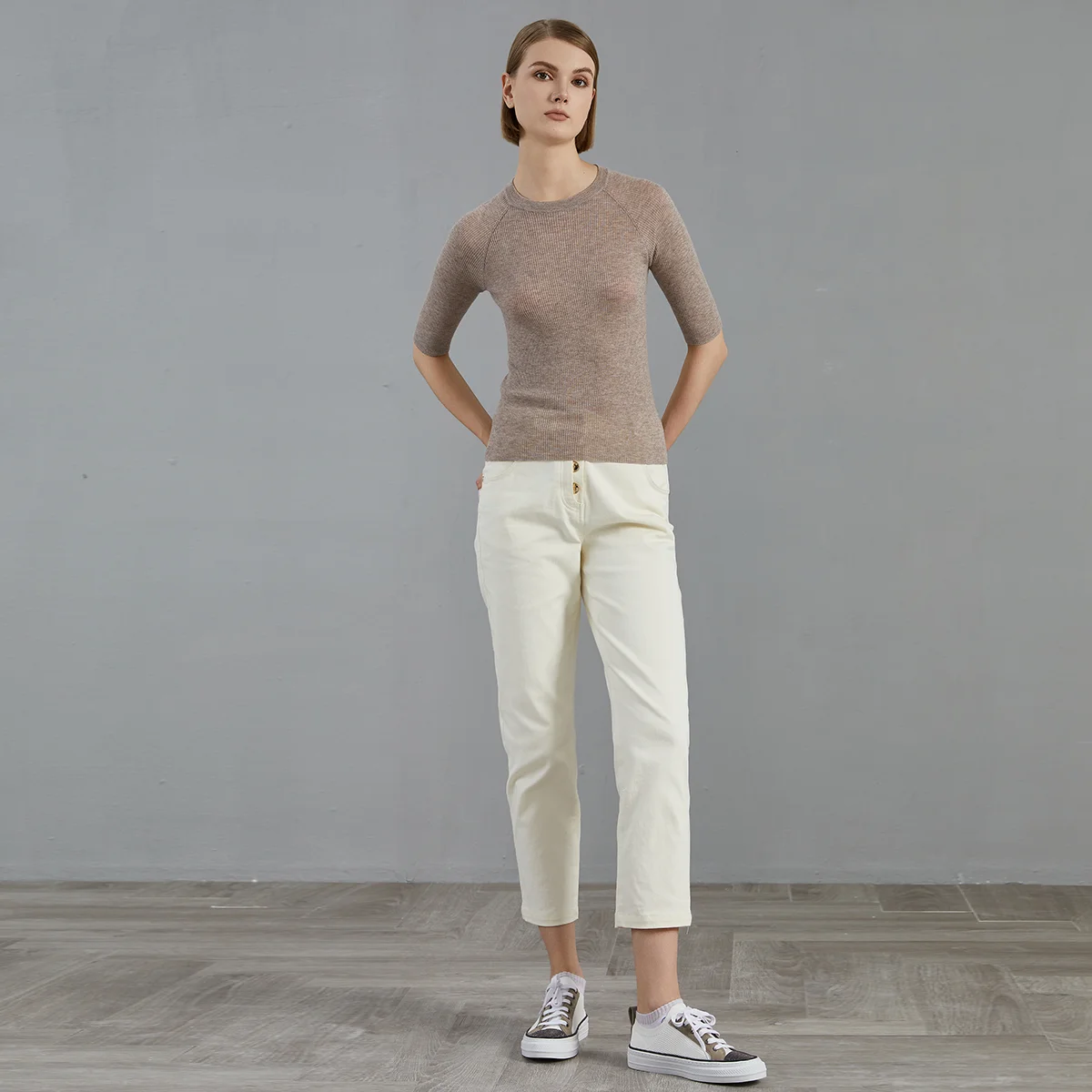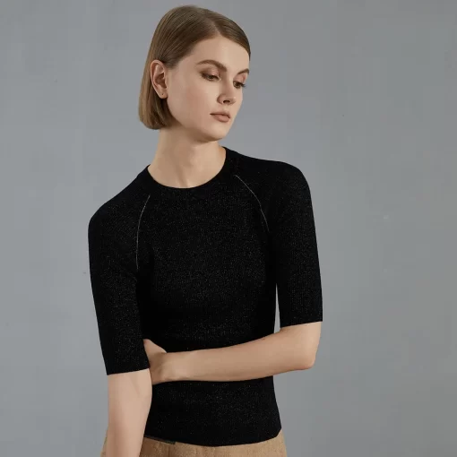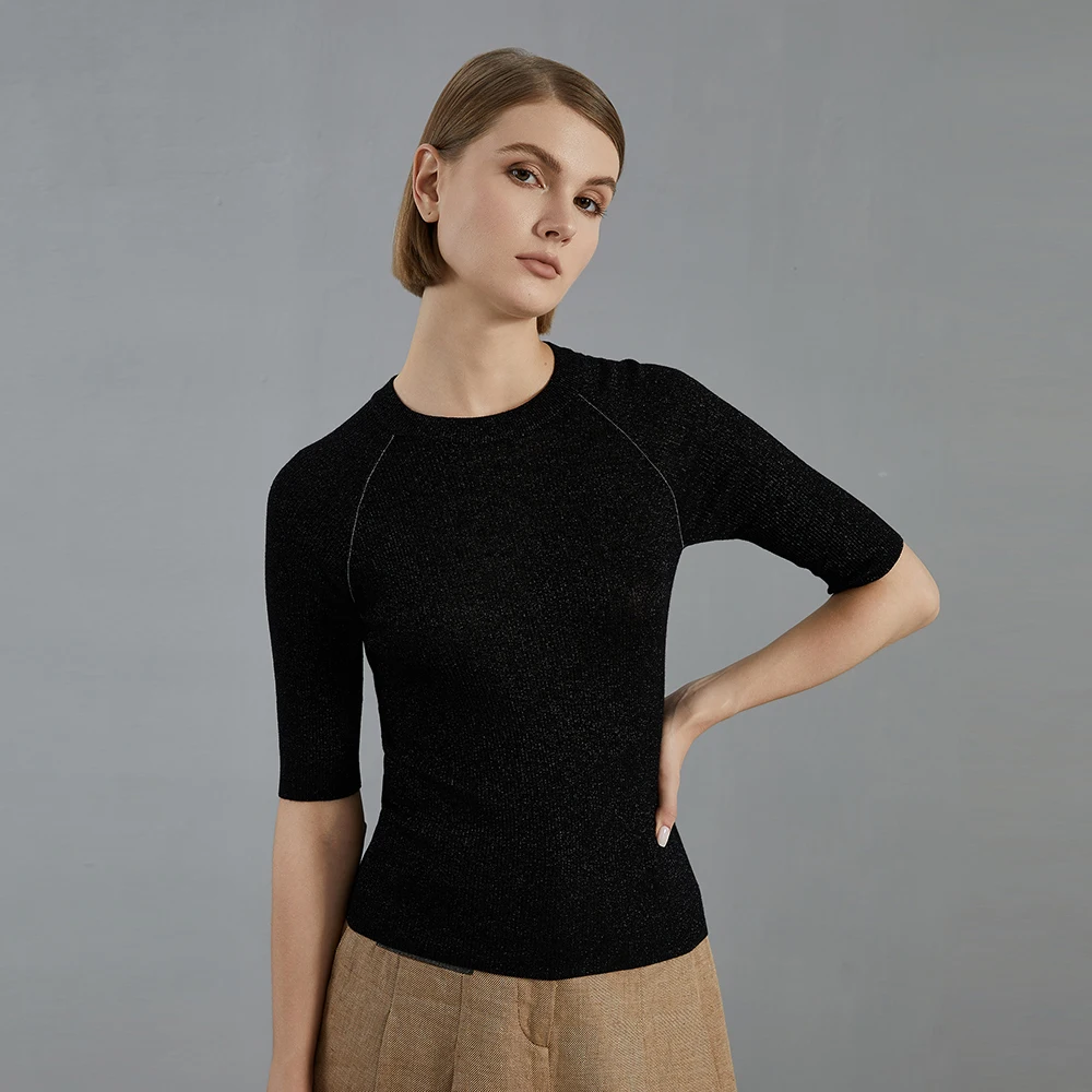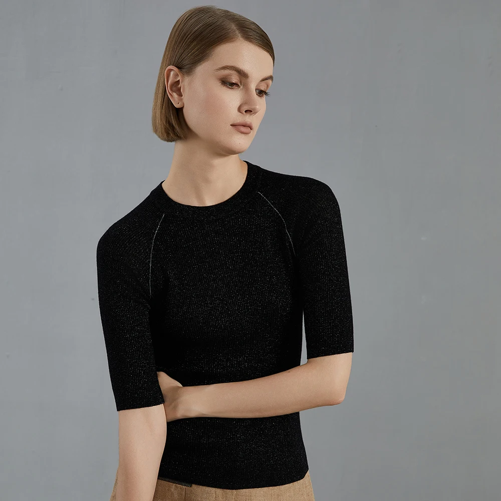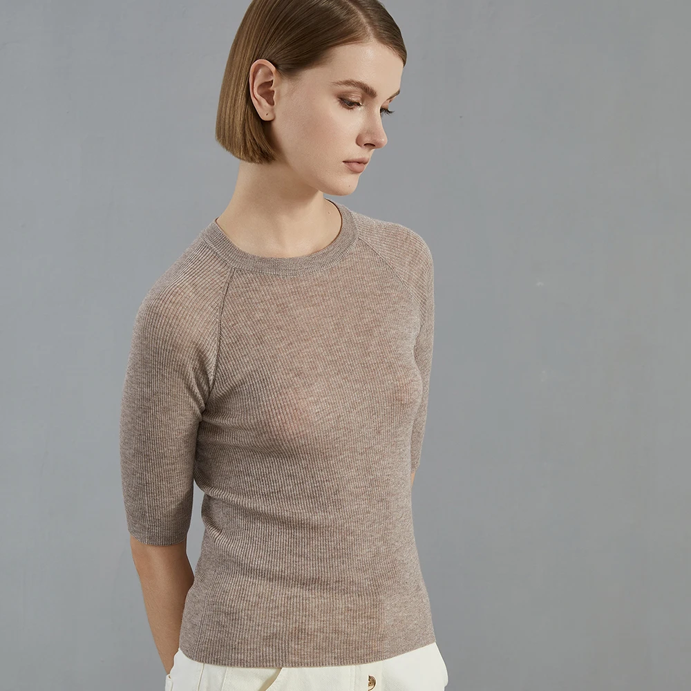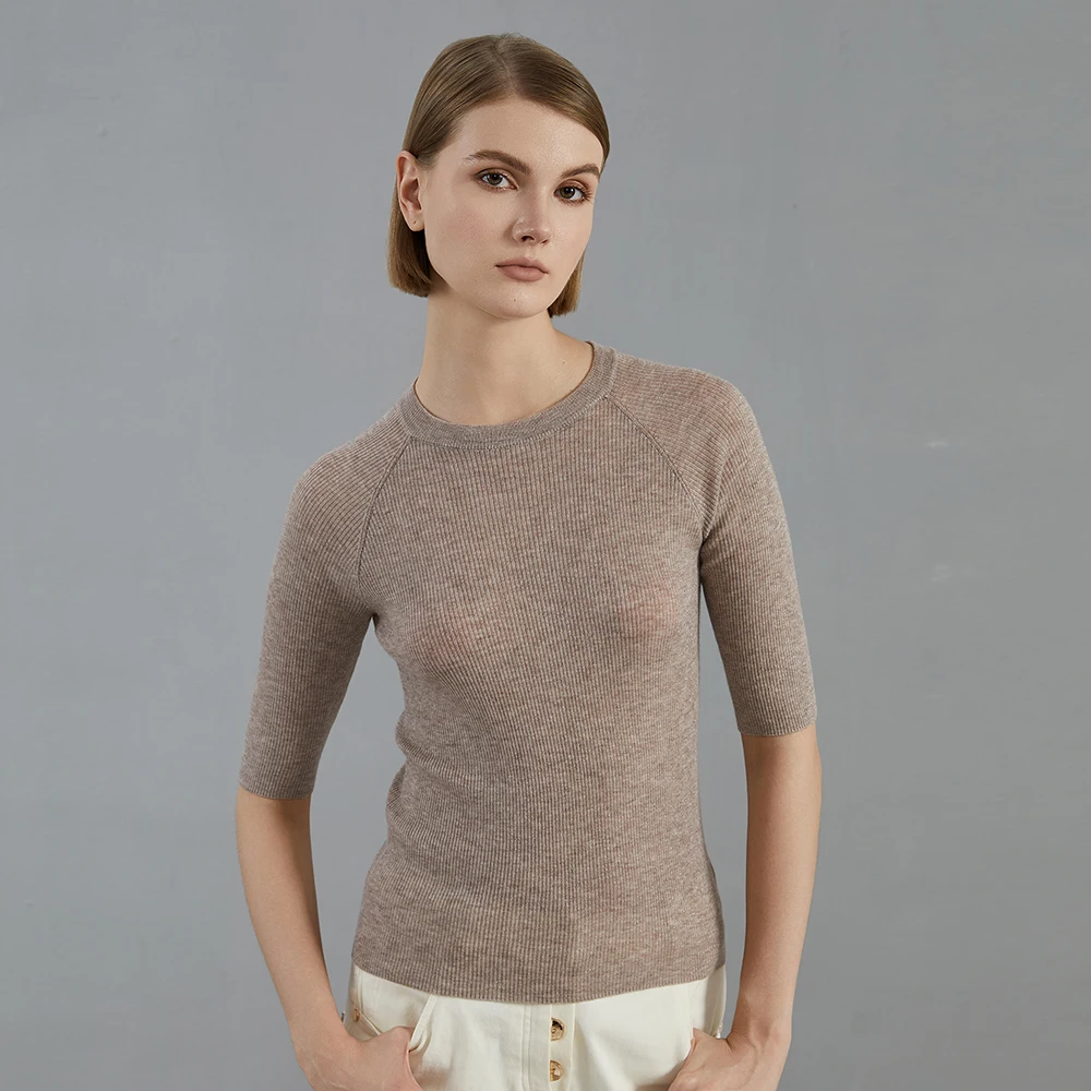BC677 68.9% wool high-end mid sleeve woolen knitted sweater for women Thin pullover Luxury womens Clothing