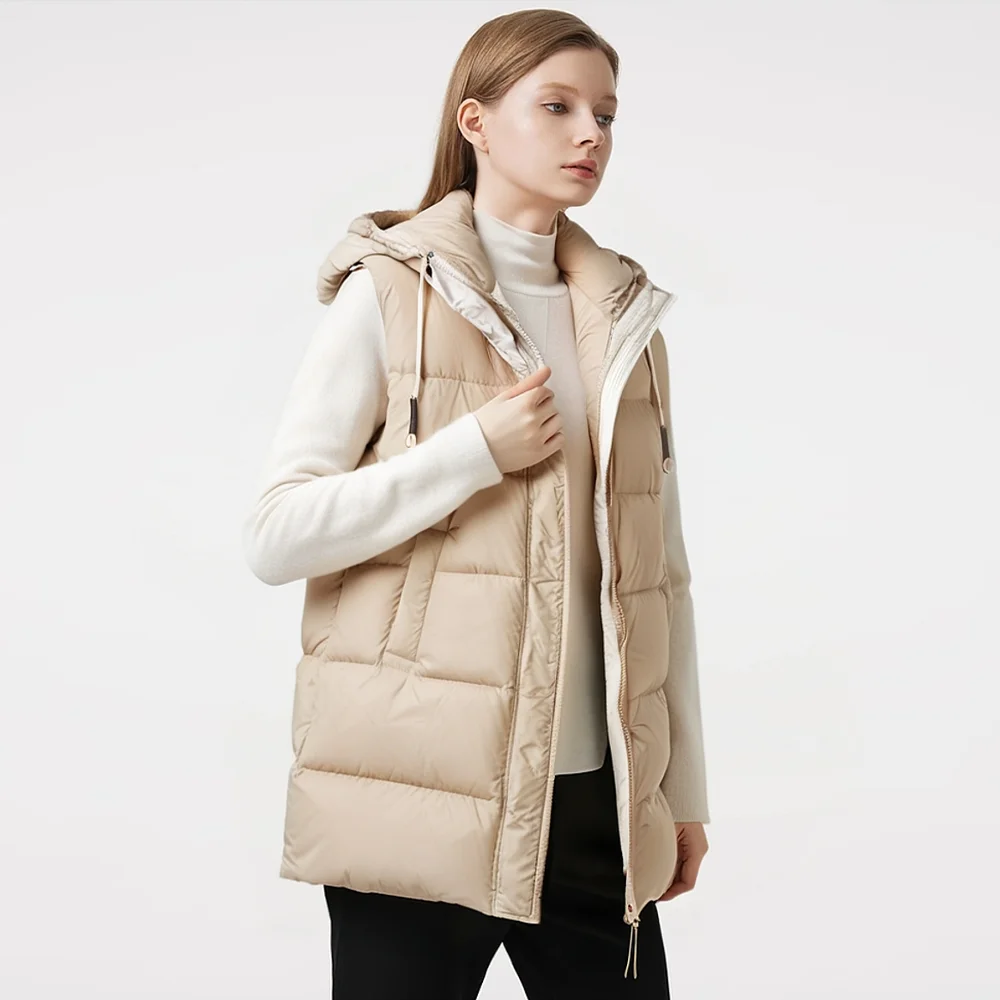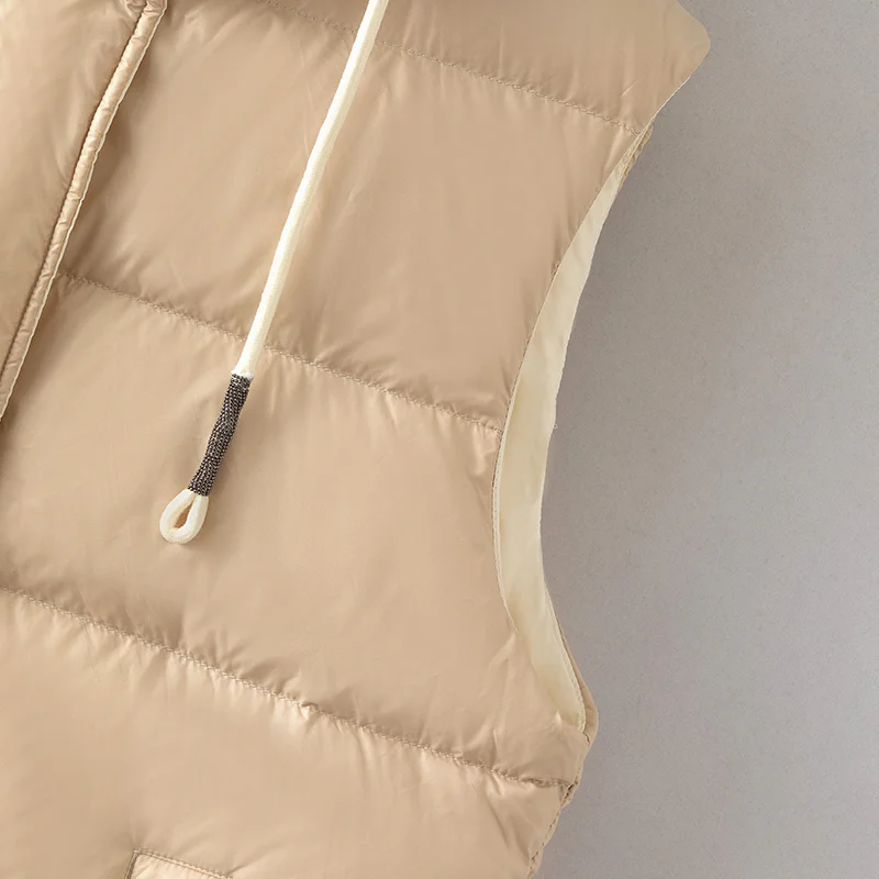 CA-39 In Stock Hooded Zip Covered Button Sleeveless Clothes White Duck Down Puffer Jacket Vest Down Vest Puffer Vest