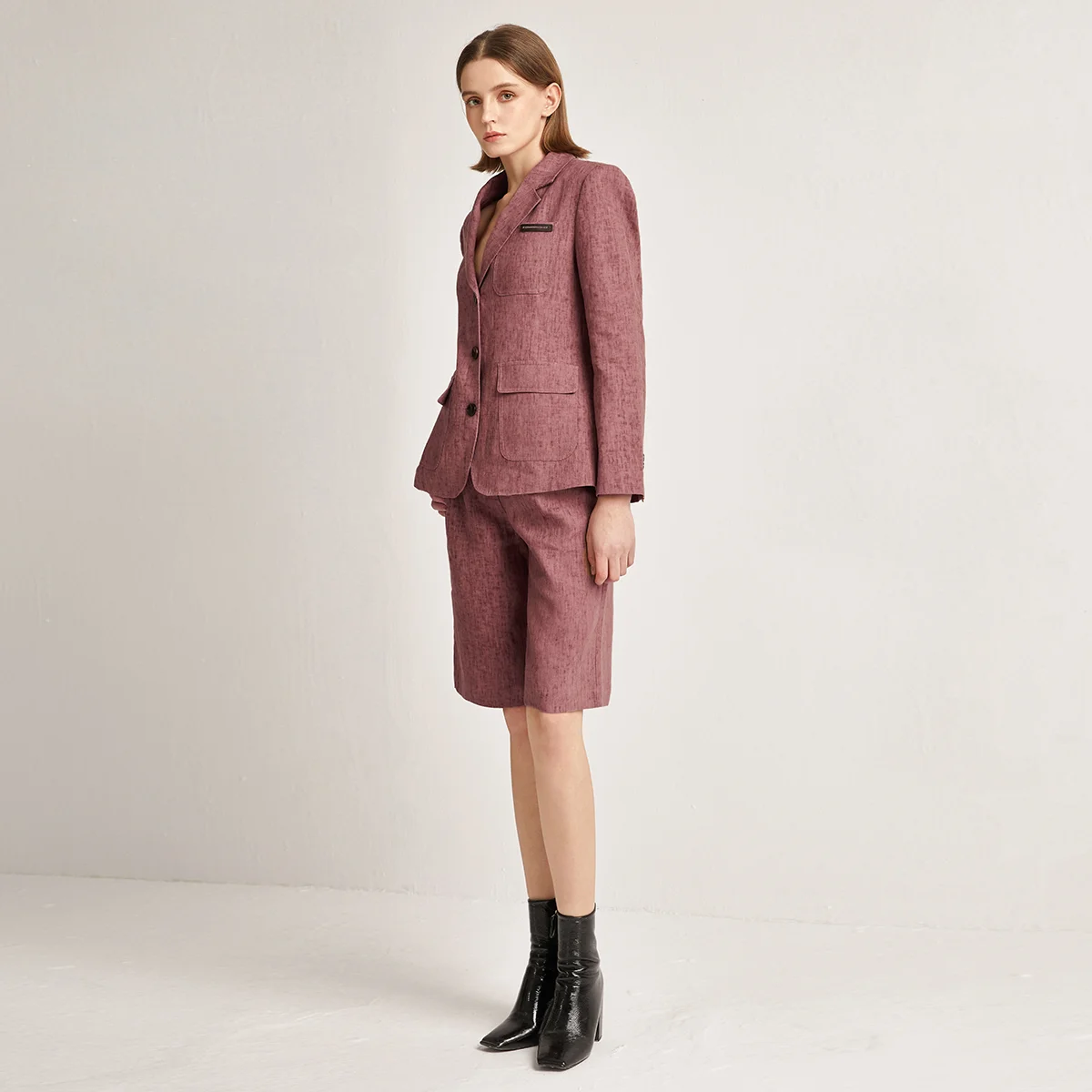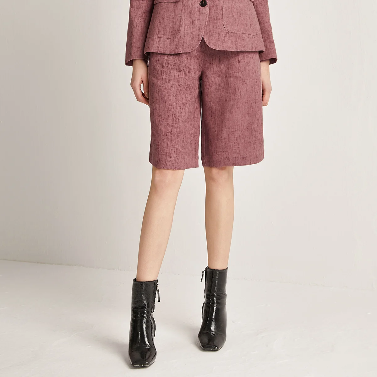 K1106W Luxury Formal Boutique Store 100% Linen Women’s Clothing High Waist Shorts Women Short Linen Short Trousers