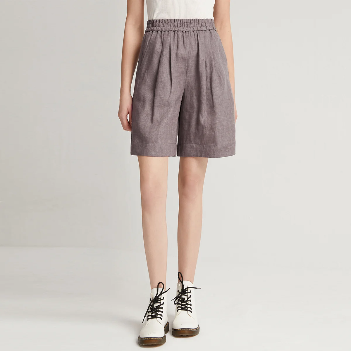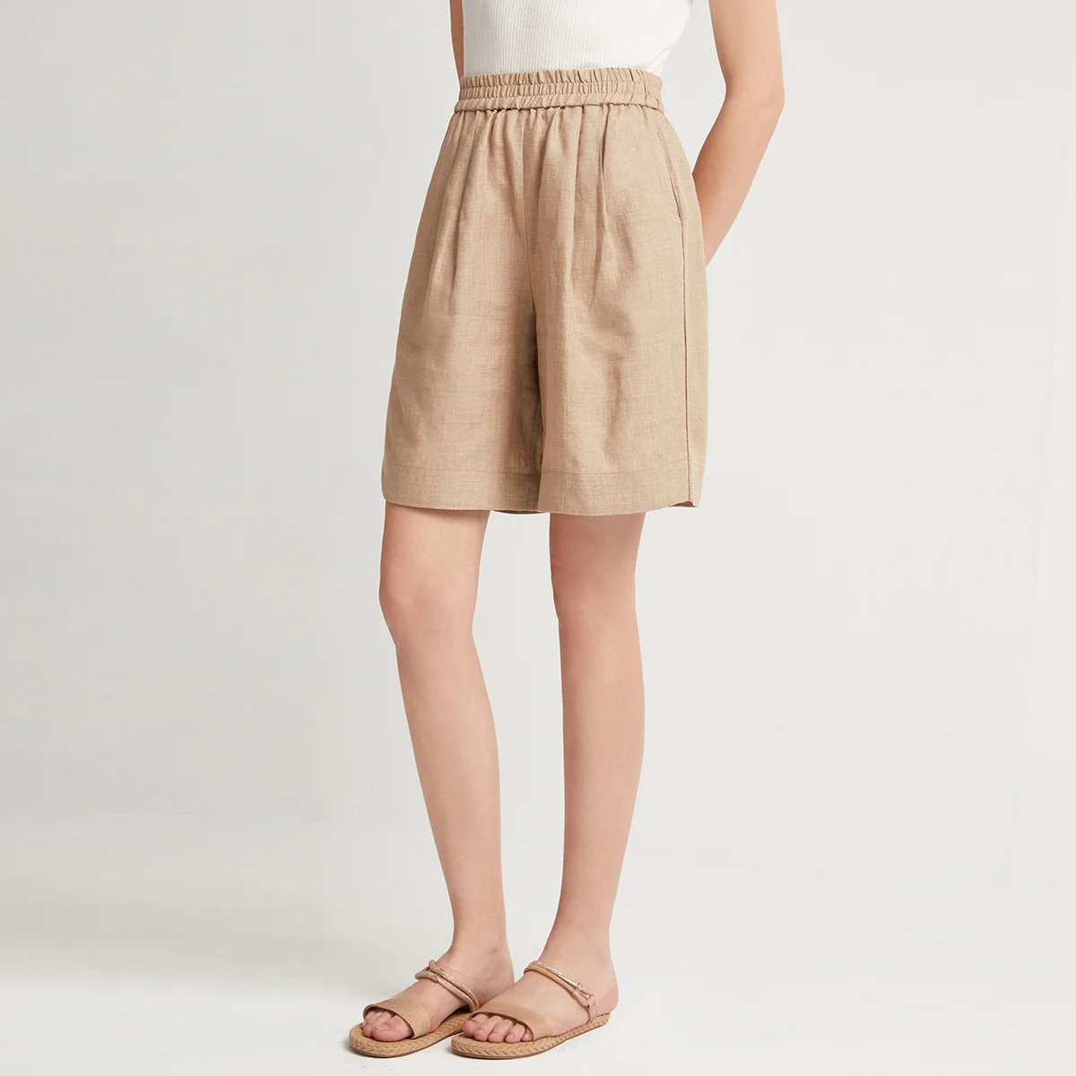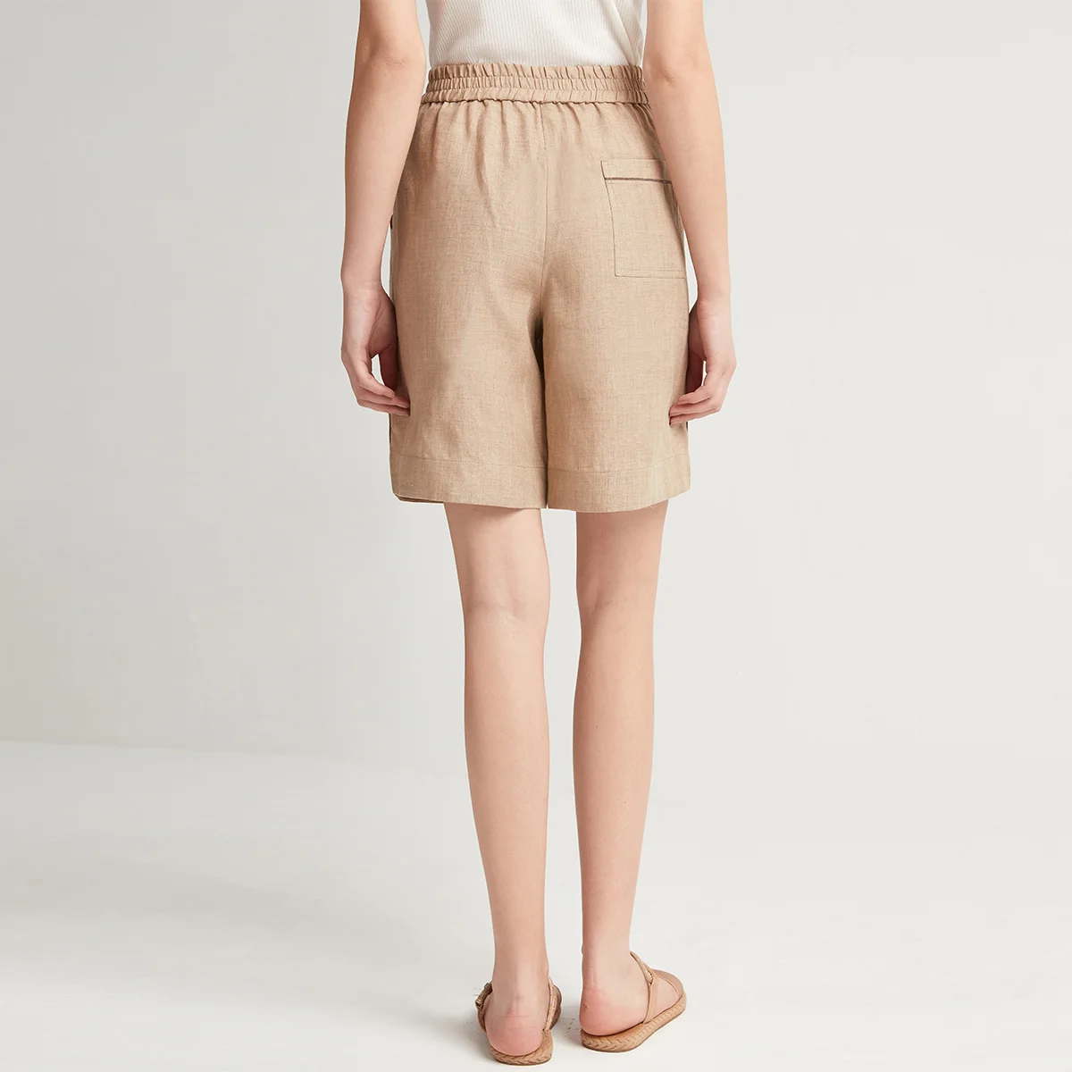 K1118W Solid Color High quality Luxury womens Clothing Ladies Shorts Pants 100% Linen Shorts For Women Clothes