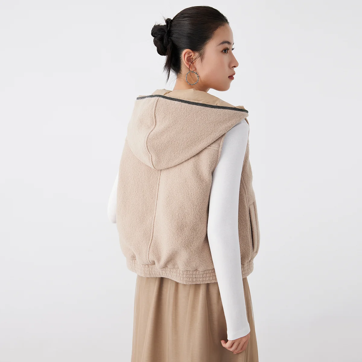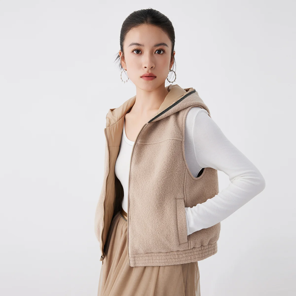 K2701W High Quality Luxury Women’s Clothing 100% Wool Filling, 90% White Goose Down Down Jacket Hooded Vest coats